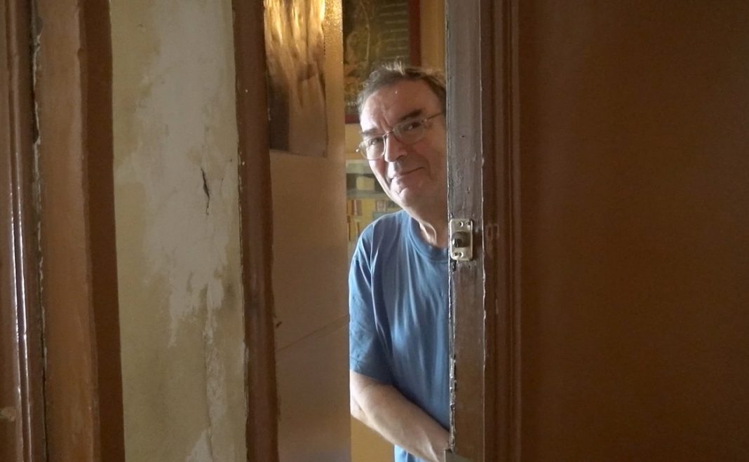 Il y a donc eu Léon, mais voici un autre personnage : Guillaume, le boulanger. Là, quelques gestes, une façon de filmer Guillaume face à son four, au premier plan mais légèrement décalé, puis ouvrant la porte vitrée de l’appareil. Distance et proximité de l’homme à son outil, à sa machine, statut toujours ambigu de l’objet qui existe avec et sans nous. Comme une description dans un roman : jamais gratuite, mais pourtant autonome. Au tour de Jaquotte maintenant, qui revient fidèlement, tous les ans, dans la maison vide de ses parents défunts, à Chalonnes. Cavalier embrasse ce qui est la matière romanesque par excellence : le temps. Temps d’antan solidifié, incarné dans cette maison ; temps à venir puisqu’il faut vendre, laisser définitivement derrière soi. Temps là encore avec Daniel et les boucles de ses TOC, de cette éternelle répétition compulsive. Volonté sourcilleuse de donner un ordre impeccable aux choses, tout comme les jeux à gratter dont il est fervent sont une tentative de réguler le hasard. De trouver, comme dans un roman, le sens et l’ordre qui se cachent dans le livre de la vie. Cette quête, c’est aussi celle de Philippe Labro, objet du cinquième portrait et qui, veste de velours, son fidèle stylo-plume à la main, prépare les interviews qu’il doit réaliser en une après-midi. Il absorbe des pilules pour tenir le coup (« pas un remontant, mais un détendant », précise-t-il), avoue qu’il est noué. Enfin, dernier portrait, celui de Bernard – Bernard Crombey, qui fut l’acteur de Cavalier dans Le Plein de super, en 1976. Bernard joue sur une petite scène, une pièce où il est seul. Le théâtre réduit à ce qu’il a de plus nu (un praticable de planches, une chaise, une table) ; le cinéma tout aussi quintessencié (le filmeur, Cavalier, et sa caméra) : comme pour résumer l’acte de filmer à ses éléments constitutifs, primitifs. L’art du jeu, la caméra. Comme les grands romans finissent toujours par réfléchir sur eux-mêmes, par se réfléchir en eux-mêmes, Cavalier filme sa propre pratique.