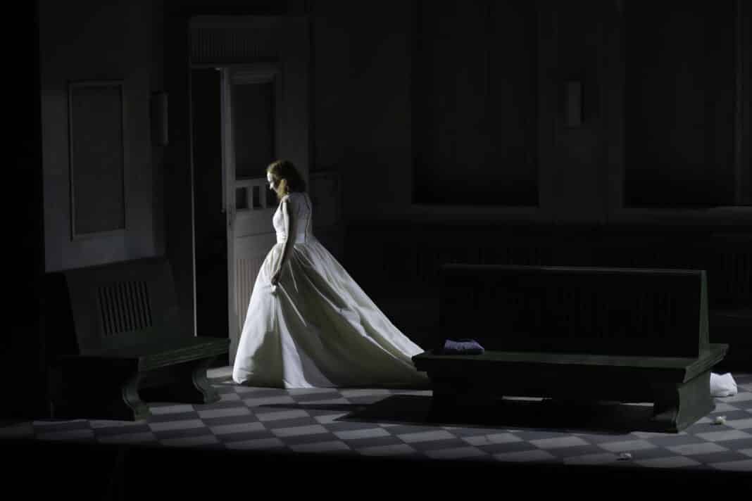 Le metteur en scène allemand Christof Loy choisit de placer l’opéra dans un hôpital psychiatrique, et non dans les différents décors de la vie parisienne, accentuant cette idée d’enfermement de la jeune fille. Les parents viennent ainsi lui rendre visite, la mère, glaciale Sophie Koch, en un vieux tailleur Chanel qui dit assez de son désir d’embourgeoisement, et le père, en homme de bureau si affectueux envers sa fille. La scène au cours de l’acte I qui les voit nouer un bavoir autour du cou de Louise, lors d’une de ces visites, nous annonce la perversion inavouée de cette famille. Christof Loy choisit de centrer sa mise en scène autour de ce scandale qui se joue à bas bruit dans l’opéra : l’inceste du père et de Louise. Tout tournera autour de cette violence non nommée, la rage de la mère, les supplications du père, et surtout, cette ambivalence permanente de Louise envers son père, et son amant, Julien. Louise devient donc ici moins un opéra des faubourgs de Montmartre, qu’un drame intime. Elsa Dreisig peut donc, dans un jeu sophistiqué, alterner des moments d’effroi, et des aspirations à l’amour. Ainsi, la jeune héroïne, immortalisée par l’air de l’acte III, « Depuis le jour où je me suis donnée », chanson de l’émerveillement amoureux que la soprano offre dans cette production avec une légèreté, un art des nuances et une grâce intacte. À la fois fille et amante, femme et enfant, téméraire et docile, princesse des chiffonniers parisiens et candides face à son amant, Louise avance en complexité au gré de l’opéra, devenant exceptionnelle à la fin, dans sa robe rouge et portée par le chœur. Elle a pour sœurs Mimi et Violetta, et s’inscrit dans la lignée des figures lyriques qui marquent l’histoire de l’opéra. La Callas ne s’y trompait pas, qui a chanté la partition de Louise, comme elle cherchait si souvent des figures au bord de l’effondrement. Ici, Elsa Dreisig en fait une héroïne presque bergmanienne, dans son rapport inquiétant à la folie. Christof Loy a choisi de faire voir, au-delà de la suggestion. Et ce, dans une scénographie apparemment classique. Si ce ne sont deux scènes de l’opéra qui sont absolument explicites et abolissent le non-dit. Puis se présente la fin, d’une modernité abrupte, sidérante.